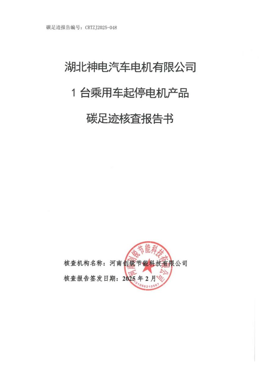 湖北神电汽车电机有限公司2024年碳足迹核查报告
