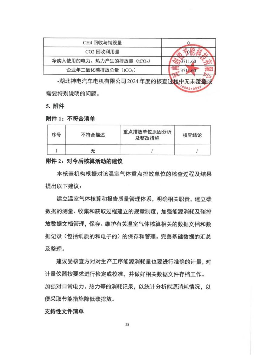 湖北神电汽车电机有限公司2024年温室气体排放核查报告